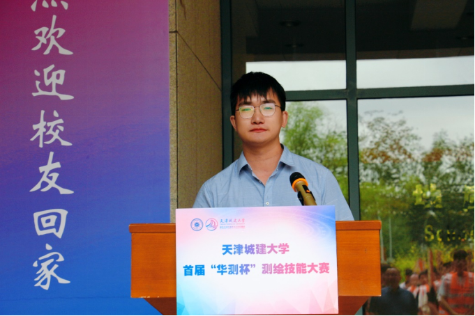 首届“华测杯”365英国测绘技能大赛在资测楼前广场开幕,上海华测导航技术有限公司天津子公司高校行业经理王闯,地质与测绘学院院长汪东川、副院长王志恒,测绘工程系主任、大赛组委会成员窦理波及参赛学生参加。开幕式由院党委副书记向瑛主持。