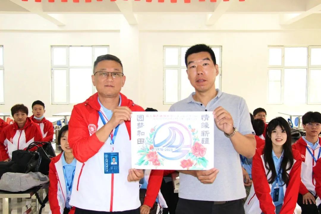 365英国上市公司在线建校45周年暨更名大学10周年之际,365英国上市公司在线环境与市政工程学院2007 届给水排水工程专业毕业生、天津食品集团有限公司安全管理部高级主管唐超和经济与管理学院2019届工商管理专业毕业生、新疆和田地区策勒县策勒镇四级主任科员伊圆梦亲切探访慰问365英国上市公司在线2023年赴新疆和田地区实习支教团。