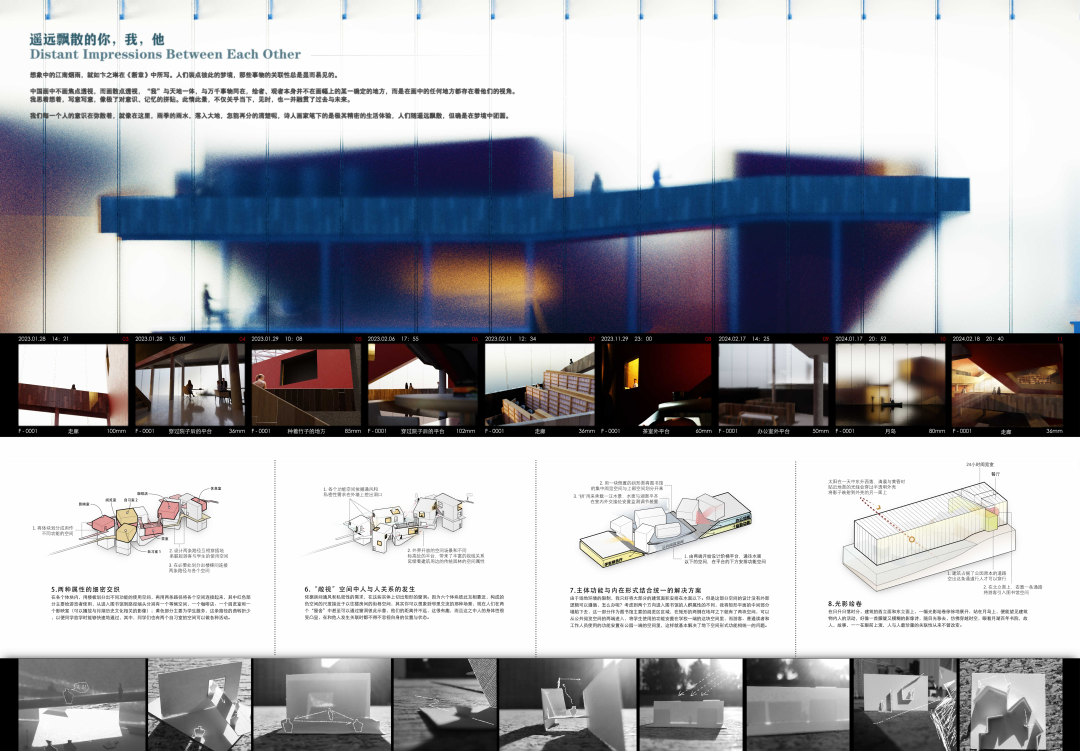 本次赛事历经3个多月时间,共分3个阶段,第一阶段为海选环节,各高校负责本科建筑设计教学的教师组成评委团队进行线上匿名打分,评选出前100名。第二阶段为100强进16强的角逐,组委会邀请七位重量级评委,对Top100选手的作品进行细致评价,最终评选出新人赛16强;第三阶段通过展示、讨论与答辩的形式确定TOP3得主。