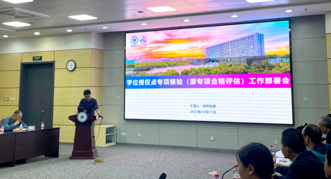 近日,学校召开学位授权点专项核验(原专项合格评估)工作部署会,这也是研究生院成立后的第一次专题会议。副校长陈志华出席会议,各相关学院院长、分管工作副院长以及学科、研究生秘书参加。工作部署会由研究生院院长刘戈主持。