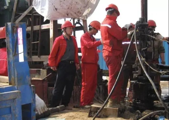 2014年杨贺来现场勘查新产品在胜利油田下井应用情况(左一为杨贺来)