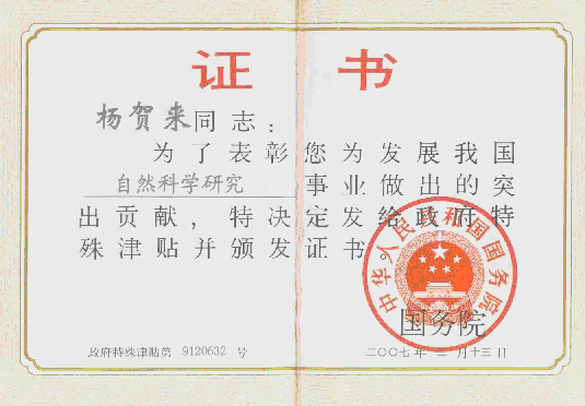 杨贺来所带第一届毕业生获得科学技术进步奖