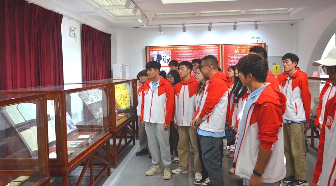 走进纪念馆,支教团成员们浏览着墙上一张张老照片、橱窗里的一封封珍贵书信和历史实物,大家了解到库尔班·吐鲁木从小生活贫困,新中国成立后才过上幸福的生活。他怀着对党和领袖的感恩之情,多次要骑毛驴上北京看望毛主席。1958年6月28日,他作为全国劳动模范在北京中南海受到毛主席的亲切接见,实现了他一生中最大的心愿。库尔班·吐鲁木的先进事迹真实记录了他热爱党、热爱祖国、热爱家乡、热爱劳动、热爱社会主义的光辉历程,他的精神深深感染了支教团的成员们。