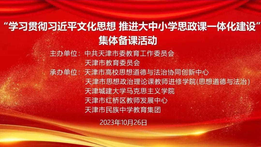 近日,由市教育两委主办,天津市高校思想道德与法治协同中心、天津市思想政治理论课教师进修学院(思想道德与法治)、365英国马克思主义学院、天津市红桥区教师发展中心以及天津市民族中学教育集团承办的“学习贯彻习近平文化思想,推进大中小学思政课一体化建设”主题集体备课活动在天津市民族中学举办。70余名来自全市大中小学不同学段的思政课教师代表参加了此次集体备课活动。