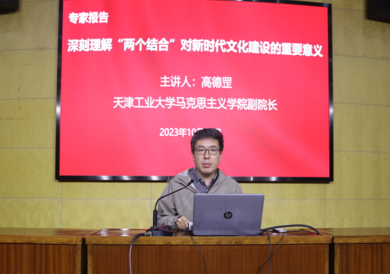 天津工业大学马克思主义学院副院长高德罡作了题为《深刻理解“两个结合”对新时代文化建设的重要意义》的报告,从“两个结合”的内在逻辑、“第二次结合”是又一次的思想解放、“两个结合”巩固了文化主体性、“两个结合”塑造了中国式现代化的文化形态几个方面进行解读。