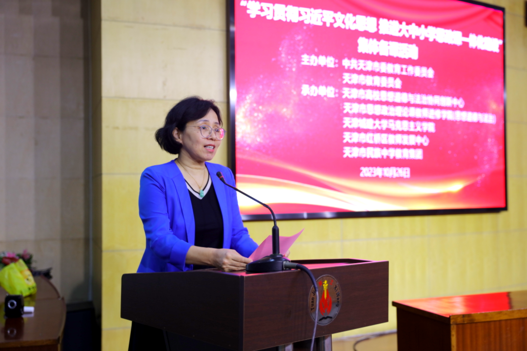 红桥区教育局副局长李艳在致辞时向参加本次集体备课活动的专家和大中小学思政课教师代表表示热烈欢迎和诚挚的感谢。她表示红桥区将积极开展与高校的合作共建,统筹推进大中小学思政课一体化建设。