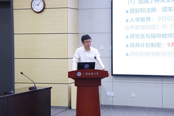 会上,研究生院汇报了近期学校在研究生教育与学科建设方面开展的工作,并对后续相关重点工作进行了安排和部署;并从专项核验工作进展、基本状态信息表填报情况及存在的共性问题和后续进度安排等方面对学位授权点专项核验工作进行了推动。涉及本次学位授权点专项核验工作的相关学院围绕工作进展情况、当前存在的问题及后续工作重点等方面依次进行了汇报。