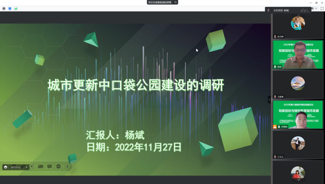 杨斌在2022年第六届城市绿色发展论坛上作主旨报告