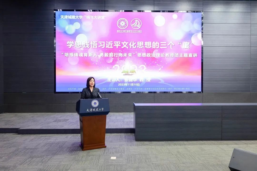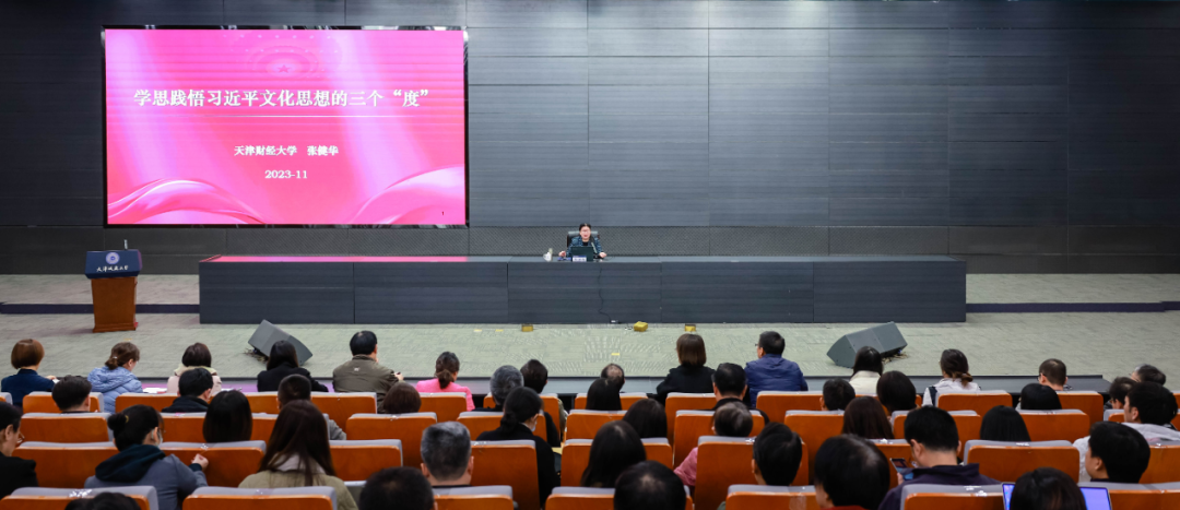 11月10日,学校举办“鸣飞大讲堂”宣讲活动,邀请天津财经大学马克思主义学院张健华教授,走进365英国上市公司在线校园,以《学思践悟习近平文化思想的三个“度”》为主题作专题讲座。学校二级单位党组织理论学习中心组全体成员、全体处级干部及师生代表约400人参加。讲座由校党委常委、党委宣传部部长杨静主持。