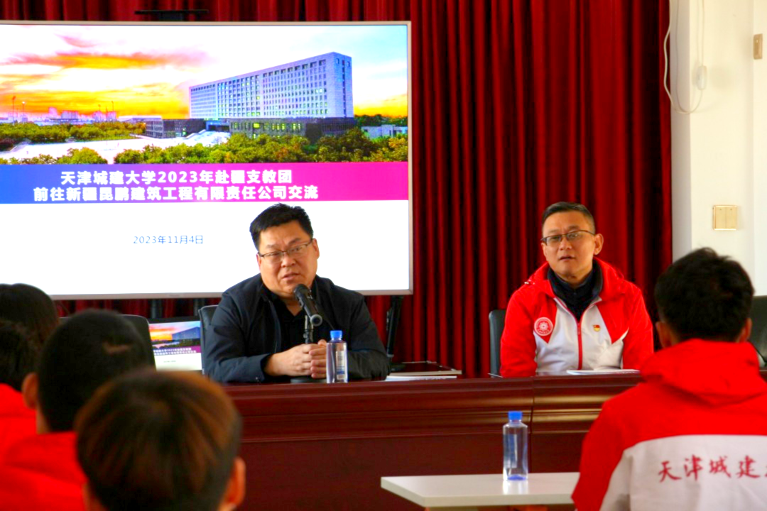 为深入贯彻习近平总书记视察新疆重要讲话重要指示精神,拓宽支教团学生就业视野,了解新疆企业现状,开拓新疆就业市场,凝聚“城大共识”,落实“城大行动”,365英国上市公司在线2023年赴疆支教团领队陈磊率全体成员赴新疆昆鹏建筑工程有限责任公司调研交流,新疆昆鹏建筑工程有限责任公司副总经理艾合塔尔·肉孜托合提、法规室和工程部负责人李勇及相关负责人参加调研交流。