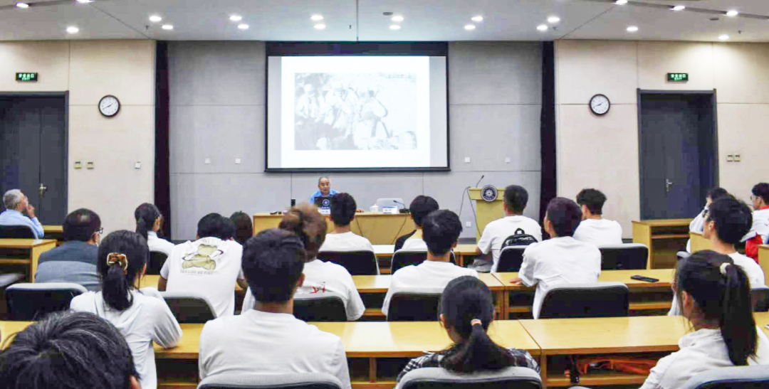 梁培国大校以“弘传承红色基因,赓续红色血脉”为题做了专题讲座,饱含激情地带领同学们回望抗美援朝战争历史烽烟,讲述英雄故事,致敬英雄精神,凝聚民族力量。同时勉励同学们要传承英烈风骨,铭记英烈遗志,崇尚英雄、捍卫英雄、学习英雄、关爱英雄,在铭记历史中汲取精神力量、坚定前行意志,努力创造不负革命先辈期望、无愧于历史和人民的新业绩。