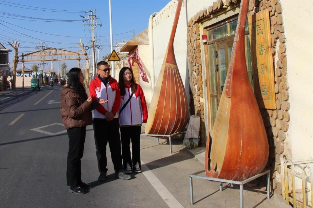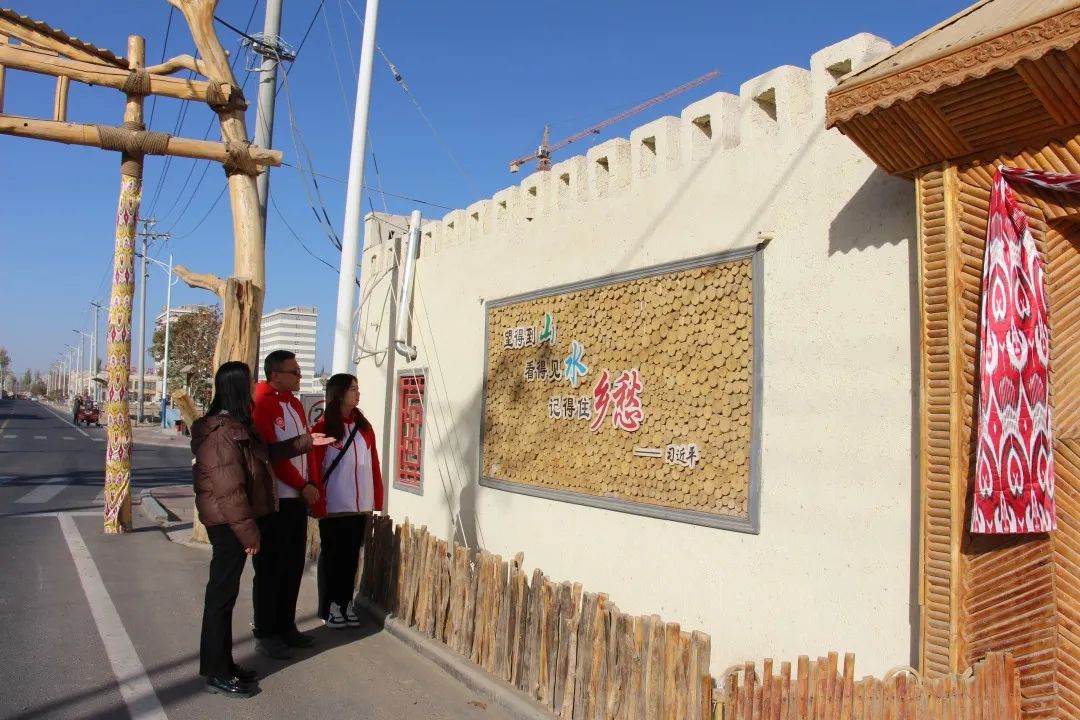 支教团成员走进策勒镇渠勒村,参观了村办公阵地党群服务中心、新时代文明实践站(含有党建书屋、书法绘画室等)、电子商务服务中心、渠勒公园、中华文化长廊、文旅融合街、农户家庭院等区域,通过讲解介绍、实地走访了解到渠勒村近年来的历史变迁与高速发展,见证到了中国共产党领导下策勒县渠勒村艰苦卓绝的奋斗历史和乡村振兴的累累硕果,深刻感受到了属于渠勒的时代精神。