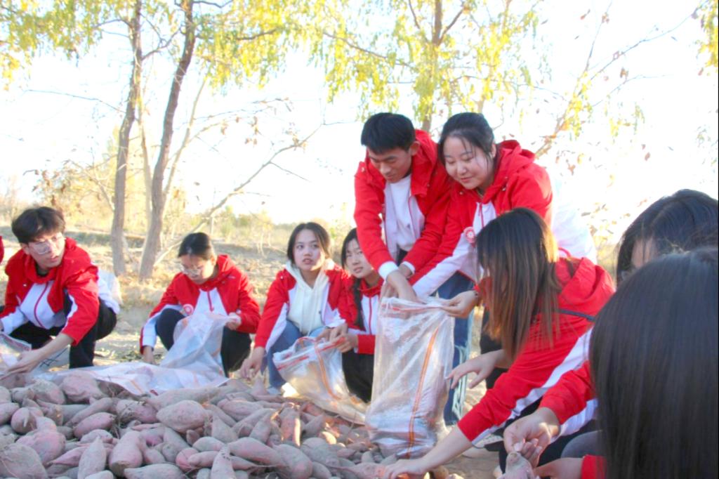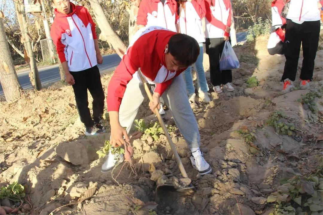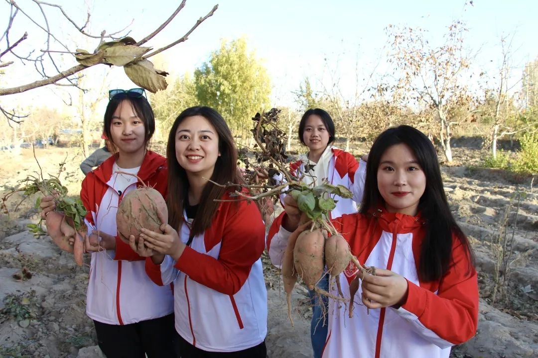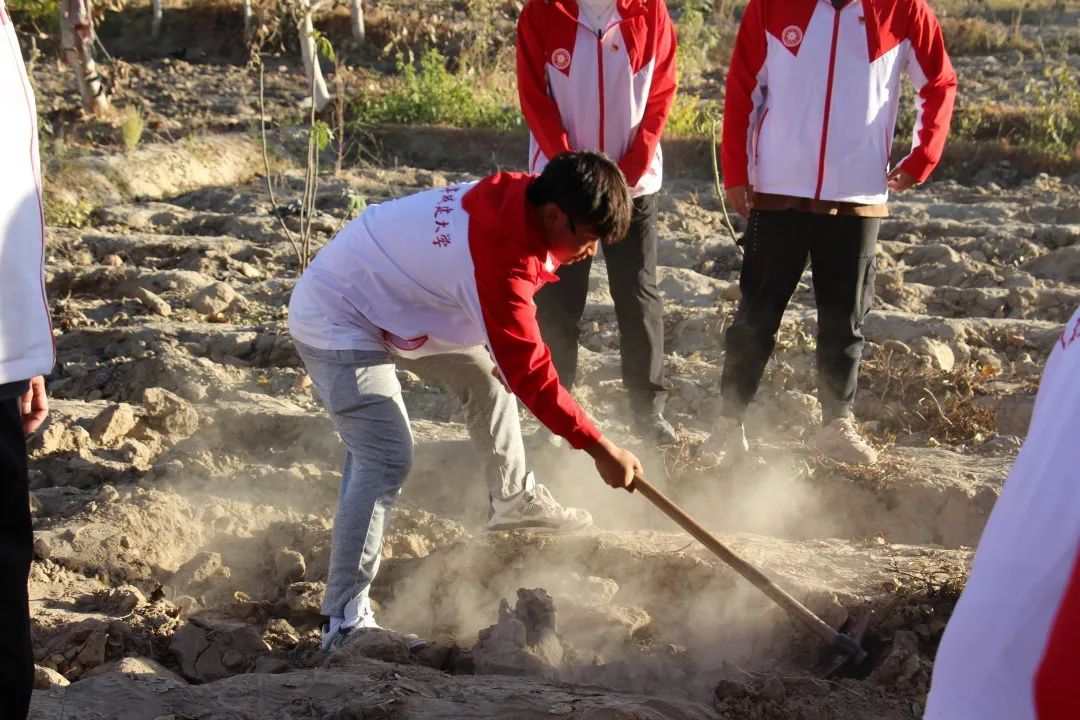 为了近距离体验劳动人民的辛勤生活,支教团成员来到了田间地头,拿起锄头热火朝天地为农民刨土、挖红薯、搬运、装袋、栽葡萄,大家相互配合,互相协作。经过一下午的劳作,支教团成员收获颇丰。在活动结束后支教团成员们纷纷表示,通过本次劳动实践活动,深深感受到了劳动人民的艰辛,真切体会到付出劳动收获的喜悦和满足,深入了解了新疆地区乡村发展现状,也更加能够体会到“谁知盘中餐,粒粒皆辛苦”简单诗句中包含的深刻含义。