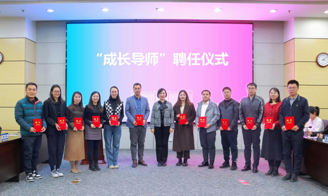 聘任仪式现场,王罡代表学校为12位“成长导师”颁发聘书。