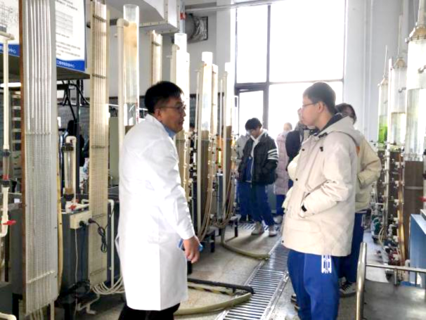在环境与市政工程学院,副院长王喆和实验中心主任赵连梅、副主任高富老师带领来访师生分别参观了学院大型仪器平台,实训中心给水排水处理装置、膜清洗设备以及环境学院虚拟仿真实验室,围绕设备的工作原理和应用场景两个方面与同学们互动,为同学们答疑解惑,极大地激发了学生们对环境领域相关专业的兴趣。