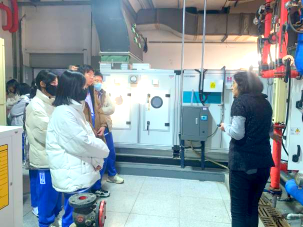 能源与安全工程学院的“聚焦双碳,让我们关注能源”课程在学校实训中心和能源学院实验中心进行。学生们参观了消灭系统、燃气调压设备、室内燃气实验等综合实训平台,以及洁净实验、中央空调、制冷热泵等综合实验系统;帮助学生们对建筑消防、城市燃气、暖通空调低碳节能设备等形成初步认知,提升了建筑安全、燃气安全意识,传递了绿色环保、节能减排理念。