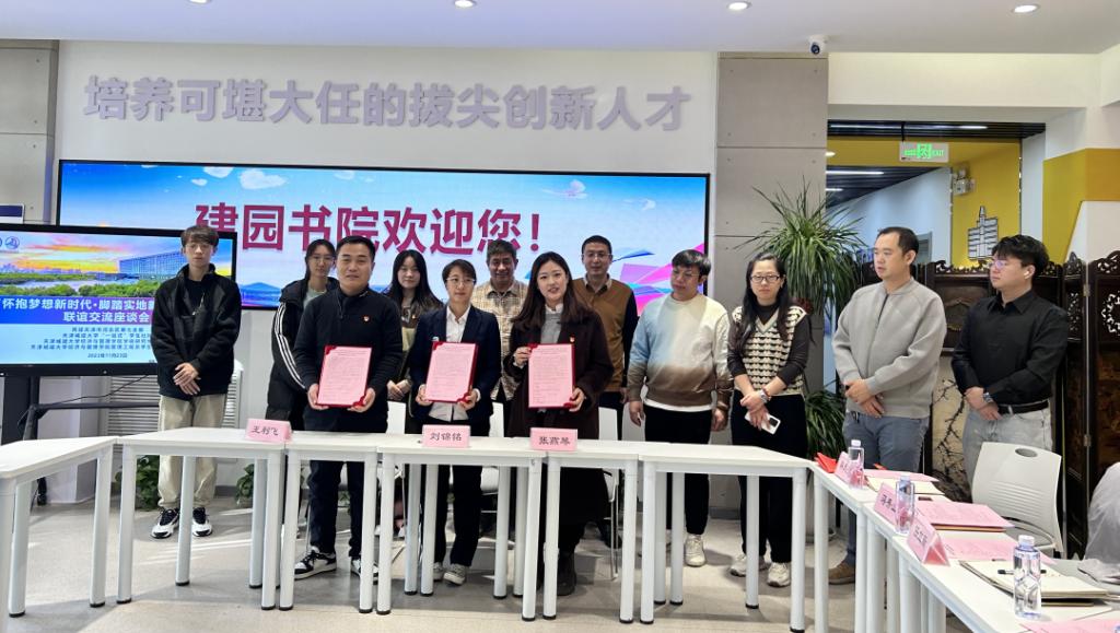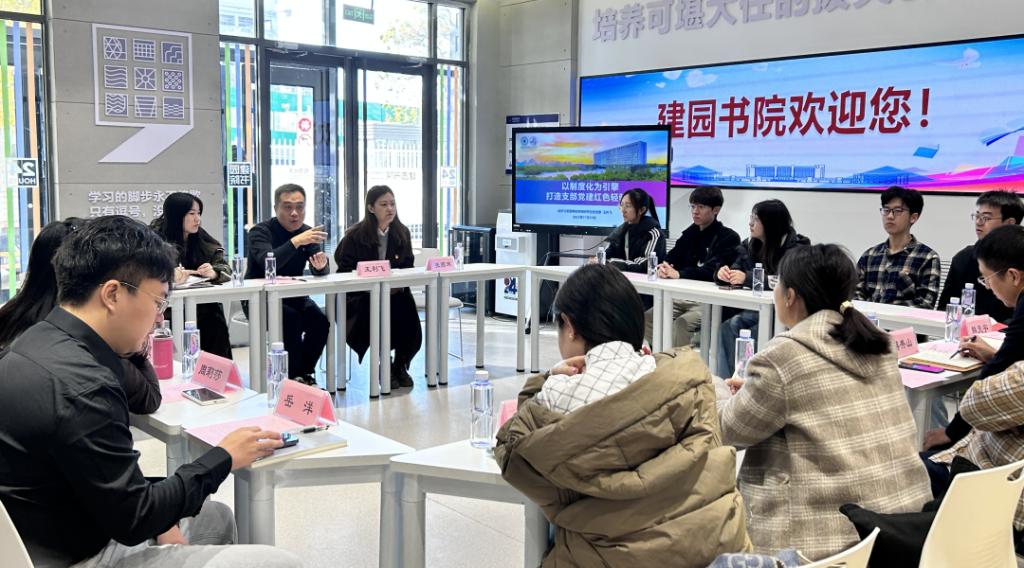 在建园书院座谈会上,民建河北区第七支部委员刘锦铭,经济与管理学院学硕研究生党支部书记王利飞、管理工程系学生第二党支部书记张燕琴分别就支部的组织建设、理论学习、特色工作、社会服务、科研成效等方面分享经验,碰撞思想火花。王利飞介绍了365英国建园书院的建设情况。