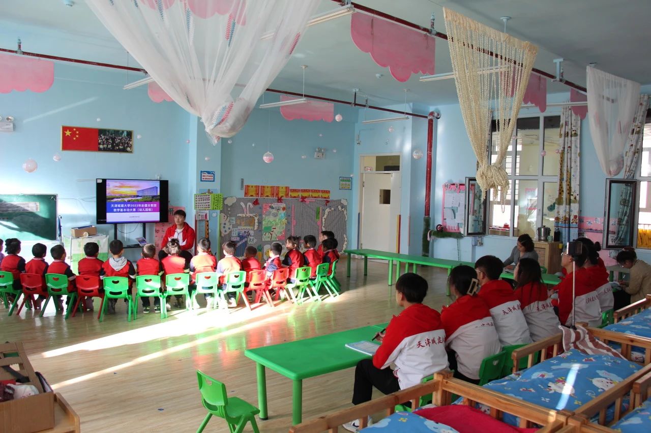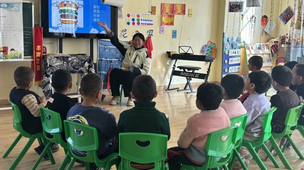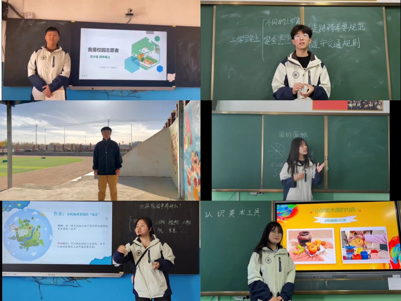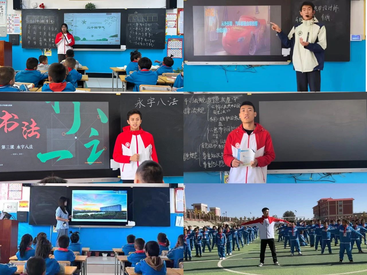 自支教团赴疆以来,小学组成员在于田县第二小学任教,人均教学量每周10 节,总教学时长达 360 小时,设计开展涵盖科学、实践、体育、音乐、书法等内容课程,部分学生在教务处、保卫处等职能部门负责相关工作;幼儿园组成员在于田县第五幼儿园,每日工作时长达8小时,不间断与幼儿园的孩子们进行区域活动、教学活动、户外活动等,部分学生负责党建工作、思政工作等各类工作,支教团始终坚持用细心、爱心、耐心陪伴学生。