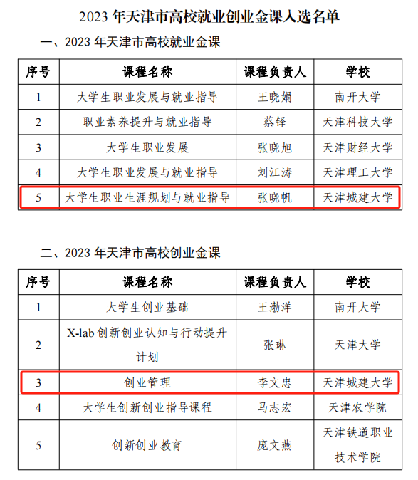 近日,天津市教育两委印发《关于公布2023年天津市高校就业创业金课入选名单的通知》,365英国《大学生职业生涯规划与就业指导》和《创业管理》两门课程入选2023年天津市高校就业创业金课,是365英国自评选以来首次入选。