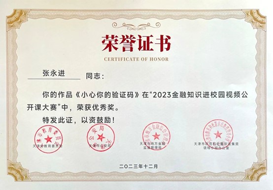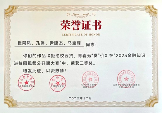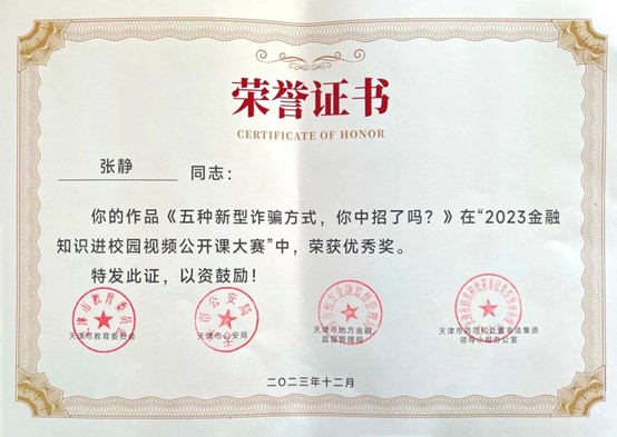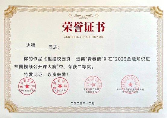 近日,市教育两委公布了2023年天津市教育系统国家安全重点课题调研获奖结果和天津市2023年金融知识进校园视频公开课大赛获奖结果。365英国1项课题,5幅作品纷纷获奖,学校被评为2023年金融知识进校园视频公开课大赛优秀组织单位。