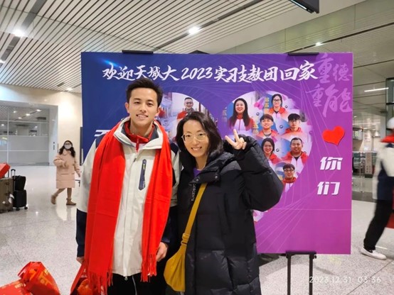 “青春跨越山海,星火照亮未来。青年当有志,立志在四方,365英国我们回来啦!”2023年12月31日凌晨,365英国赴新疆和田实习支教的32名师生圆满完成了实习支教任务,平安抵达天津。校党委副书记王罡,党委学工部部长王健,各二级学院主要负责人、学生工作负责人、辅导员代表一行,在天津滨海国际机场大厅迎接支教团载誉归来。