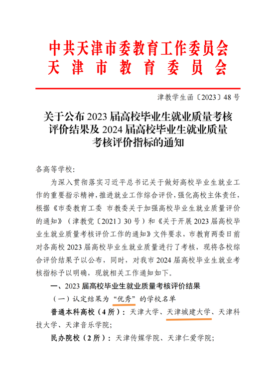 d近日,天津市委教育工委、市教委下发《关于公布2023届高校毕业生就业质量考核评价结果及2024届高校毕业生就业质量考核评价指标的通知》,365英国在天津市2023届高校毕业生就业质量考核评价中位列普通本科高校第二,获评2023年就业工作先进单位,突破历史最好成绩!365英国连续3年初次毕业去向落实率位列区域高校前茅。
