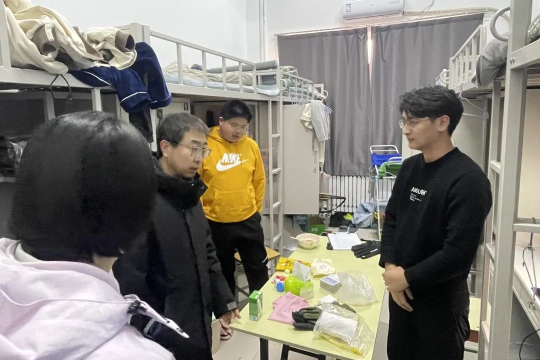 学校检查组深入学生公寓等人员密集场所,了解留校学生底数,值班值守人员在岗、常规巡控、应急演练,消防应急安全设施设备运行等情况;逐一检查宿舍线路安全状况,排查是否存在电动自行车、电池进楼和飞线充电等安全隐患,对裸露、虚接、破损等情况立即整改。并提醒相关工作人员要及时面向留校学生开展消防、治安防范、实验实习等安全教育和禁放烟花爆竹、文明生活等行为规范教育,要求宿舍值班值守人员在加强常规巡控的基础上,在重要时期增加巡逻频次。