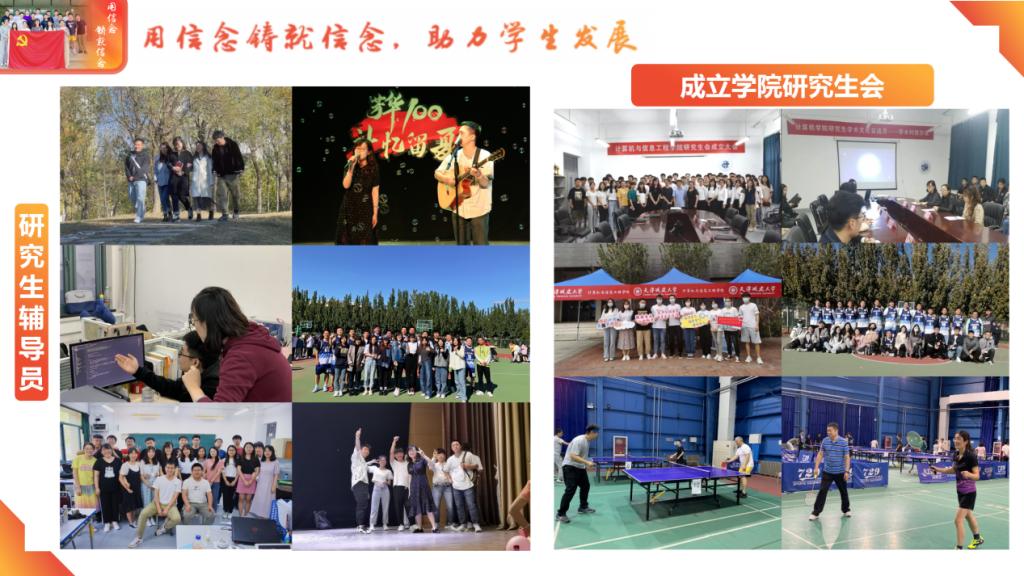 四年的工作经历,四年的研究生辅导员。如何能让研究生听得到、听得懂、听得进、听而信,是她一直思考的问题。因为情怀,也更因为责任,她成立了学院研究生会,同时形成“五育三进三融合”研究生思政教育体系,打造“研梦起航、计续梦想”研究生学术文化交流月品牌活动,至今已连续举办三届。带领年轻的研究生会获评校标兵集体,19级研究生班获评天津市先进学生集体,指导研究生斩获天津市优秀学生、天津市创业奖学金、海河自强奖学金、校优秀共产党员等多项荣誉奖励。