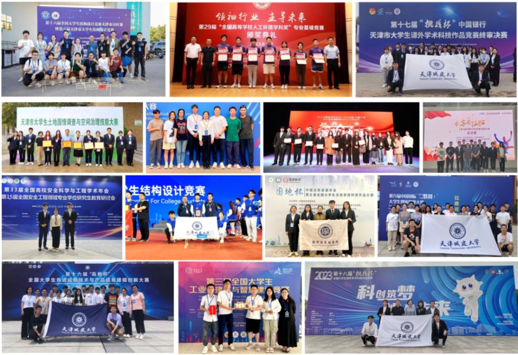 学校持续完善科技创新竞赛平台。以“挑战杯”“互联网+”竞赛为龙头,以“城建杯”系列学科竞赛为依托,扎实开展学生科技竞赛活动。组织各类双创竞赛,覆盖学生近2万余人次,荣获省部级以上荣誉500余项。“挑战杯”竞赛连续第三年荣获“优胜杯”并获“优秀组织奖”,第二届天津市大学生新媒体创新创业大赛、“天开杯”天津市大学生电商直播就业创业大赛、第二届全国残疾大学生创新创业竞赛等多项双创竞赛均荣获优秀组织奖。