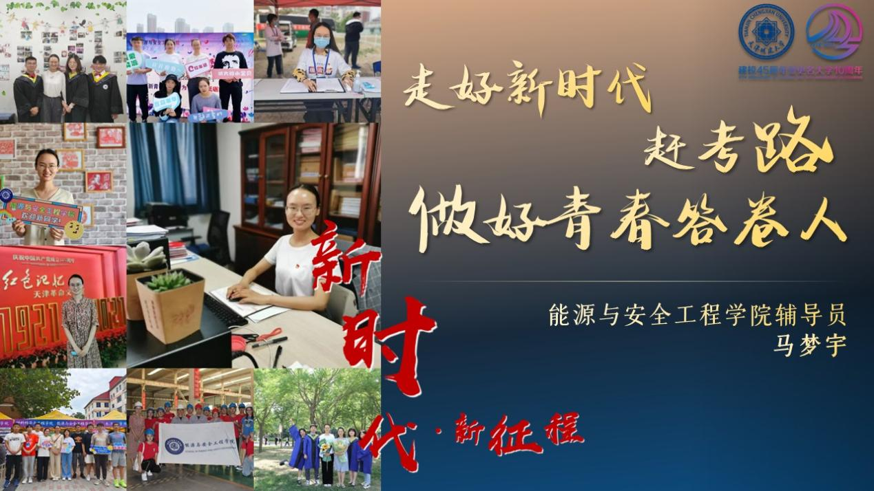 马梦宇,能源与安全工程学院辅导员,政工师,研究生辅导员。先后荣获市级荣誉5项,校级荣誉30余项,2023年荣获学校辅导员素质能力大赛二等奖、学校优秀教育工作者。下面让我们一起走进她的育人故事。