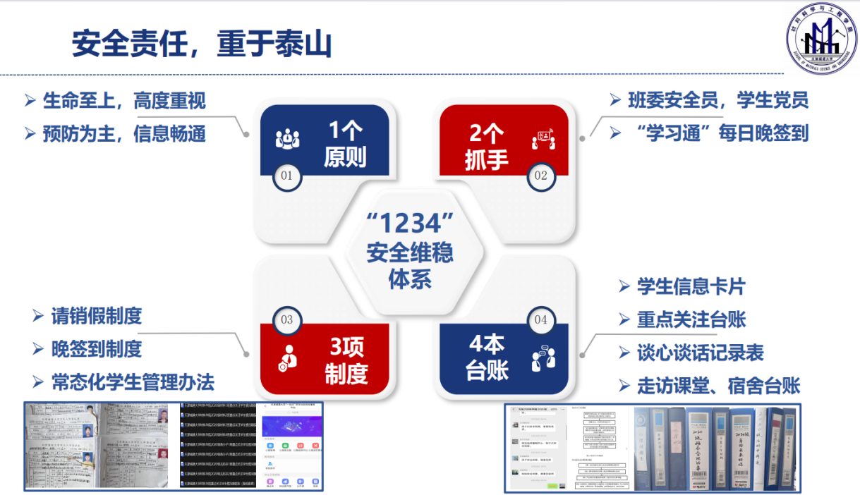 安全责任,重于泰山。刘凯始终遵循“生命至上”原则,构建“1234”安全维稳体系,他为每一名学生制作了信息卡片,清晰全面掌握学生情况,最大程度保障学生在校安全。