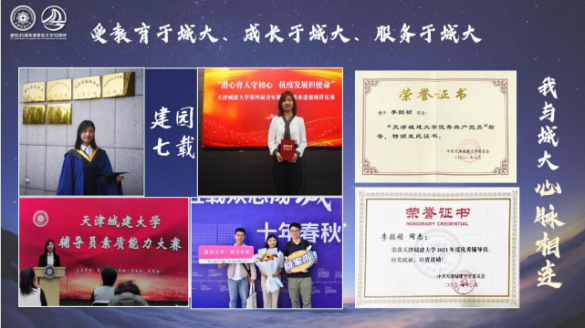 她先后指导学生获天津市“新时代·实践行”先进个人标兵、天津市暑期“三下乡”社会实践优秀团队等多项荣誉,指导学生组织获评校“标兵集体”、校“十佳社团”,所带班级中累计3个班级获评校“优秀班级”荣誉,学生脸上的自信是她最大的欣慰。