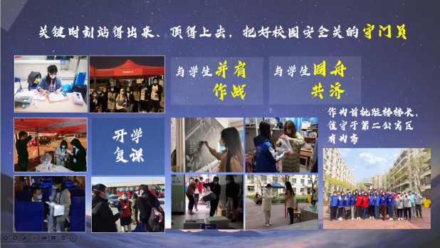 学生工作无小事,事事是育人,教师无小节,处处是楷模。辅导员不仅仅是一份职业、一个称呼,而是时刻保持政治清醒,在思政主阵地唱响主流好声音的冲锋员;是关键时刻站得出来、顶得上去,把好校园安全关的守门员;是身怀绝技,用智慧心窍指引青春迷途的领航员。多重角色汇聚,在国家崛起栉风沐雨的风华里,在为党育人为国育才的使命中,她将继续用爱深耕思政责任麦田,让理想薪火相传,让信念掷地有声,陪同学们做新时代的摘星人。
