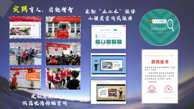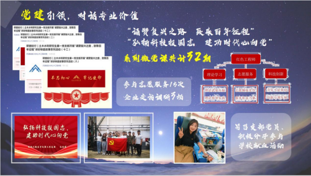 党建引领对话专业价值,带领支部打造“弘扬科技报国志,建功时代心向党”系列微党课;聚焦学风激发青春动力,组织开展“研”值提升计划等系列研学活动20余次;致力科创提升育人成效,构建“阶梯式科技创新活动体系”,打造学院“一系一品”科技工作品牌,本年度承办校级学科竞赛5项,开展教授讲坛·博士论坛系列讲座12期,这一年来学生在“挑战杯”、“互联网+”等各级各类科技竞赛和双创活动中获国家级奖项19人次,省部级奖项70人次,校级奖项600余人次。同时她也积极指导学生参加各类,用实际行动帮助学生以赛促学,实现学习新突破。汇聚群星,让实践生根发芽,带领学生录制“土小木”法律小课堂,用科普照亮学生前行的路,并深入社会基层开展志愿服务,为构建和谐社会贡献自己的星光力量。