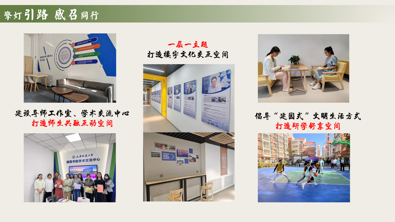 2023年,代鑫鹏作为第一批“一站式”学生社区建设者,积极投身到建园书院的筹建中。他和同事们一起打造研学互动的师生共融空间,拉近师生交互时空距离;打造独具特色的楼层文化,让“沉浸式”思想教育落地生花;倡导“建院式”文明生活方式,让爱园荣校成为每个人的行动自觉。经过半年的建设,建园书院建设模式被天津市《学校思想政治工作情况》收录,并向全市推广。