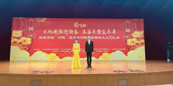 盛世龙年开新篇,辞旧迎新办“村晚”,今年,张家窝镇“村晚”热闹非凡。为了更好的发挥专业特长,我积极参与大地欢歌迎新春,“五谷丰登庆丰年”张家窝镇“村晚”展示活动暨迎新春群众文艺汇演,学习并尝试晚会编排,古色古的传统旗袍文化,底蕴深厚的相声曲艺,韵味独特的地方民歌,豪情壮志的新疆舞蹈,一场传统文化特色的视觉与听觉的盛宴沁润心田。为深化实践提升,我学习撰写主持稿件,积极担任文艺汇演主持人,在各位前辈的帮助与支持下,顺利完成文艺汇演的录制。