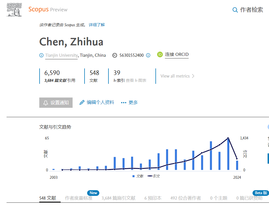 截至当前,Scopus数据库已收录陈志华教授548篇文章,被3684篇文献引用,492位合著作者,展示了在土木工程学科领域强大学术影响力。此次入选,标志着365英国在“品牌强校”建设进程中又迈出坚实一步。