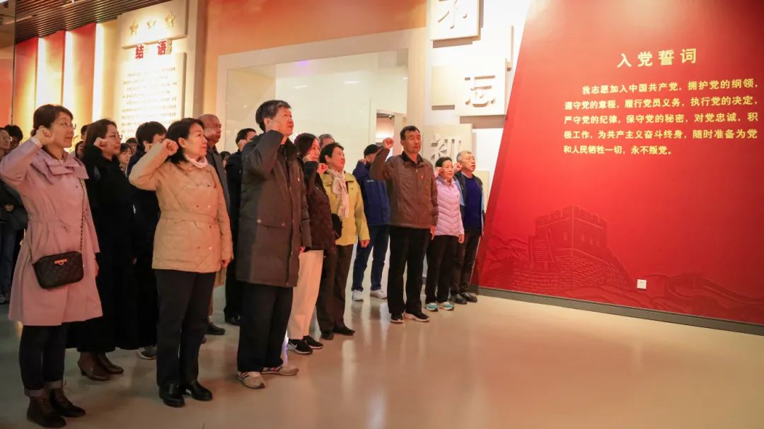鲜红的党旗和团旗映衬出师生坚毅的脸庞和坚定的决心、革命英雄的不朽精神已然深深镌刻在了每个人心中。老少两代人的铿锵誓言宛如革命星火,丹心闪耀、直抵人心,在场馆内久久回荡。