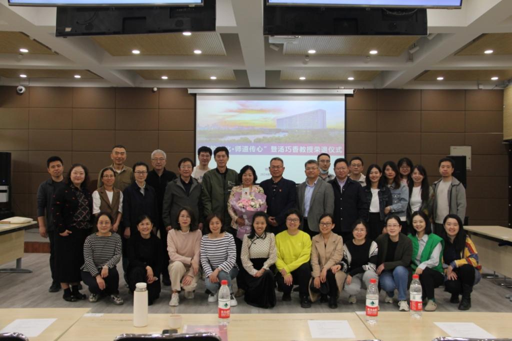 随后,汤巧香教授发表荣退感言,对学院组织的荣退仪式表示感谢,并深情回顾了自2002年起在建筑学院的工作历程。汤教授用自己的亲身经历描述了风景园林系建系以来所发生的巨大变化,细数点滴感动瞬间,感恩几十年来身边领导与同事们的帮助。汤教授用朴实的话语表达了对教育事业的热爱与不舍,对学校和同事们的感恩与眷恋,并为学院近年来教育质量的快速提升感到由衷的欣慰与自豪,表示将继续关注学校的发展,支持学院的工作,以新的身份为学校的繁荣发展贡献力量。