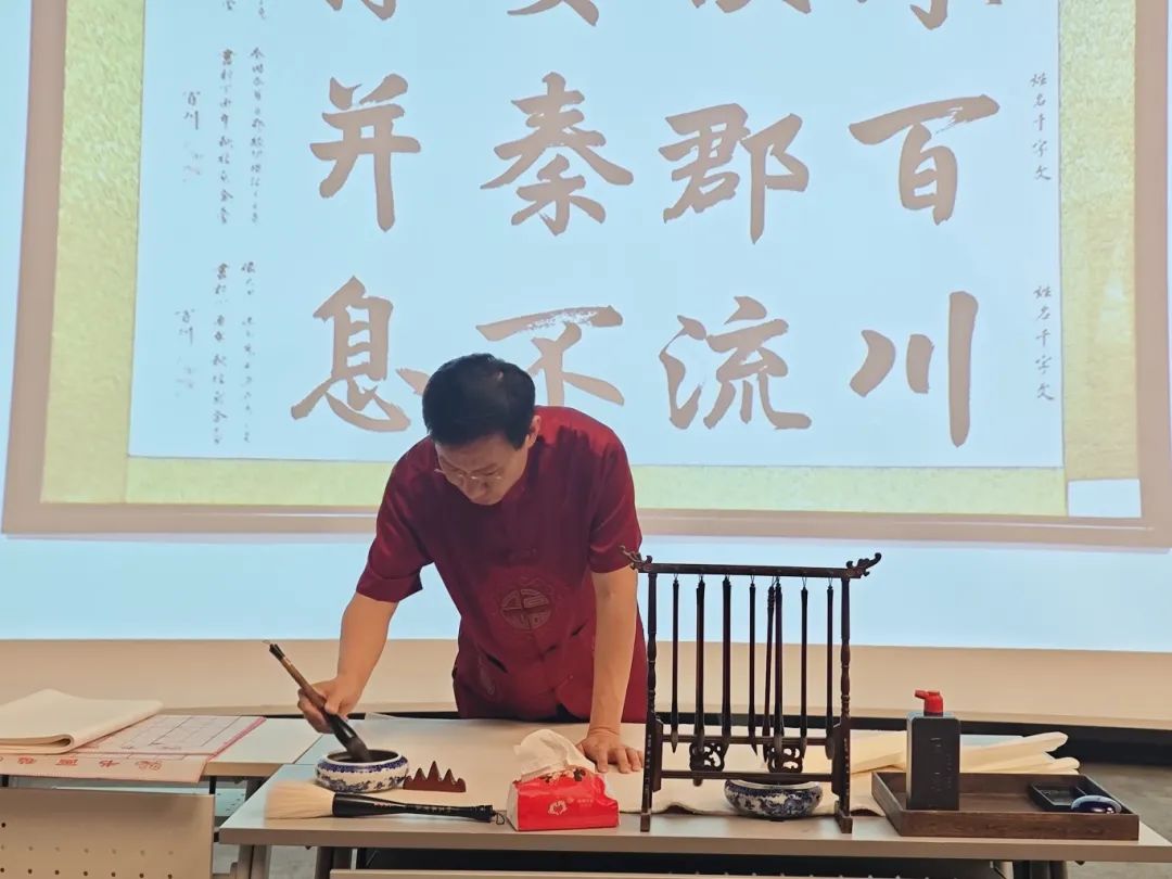 百川老师同现场中外学子一同体验千字文的字字珠玑。留学生们在百川老师的指导下书写汉字,在一笔一划中体验千字文和汉字艺术的魅力。