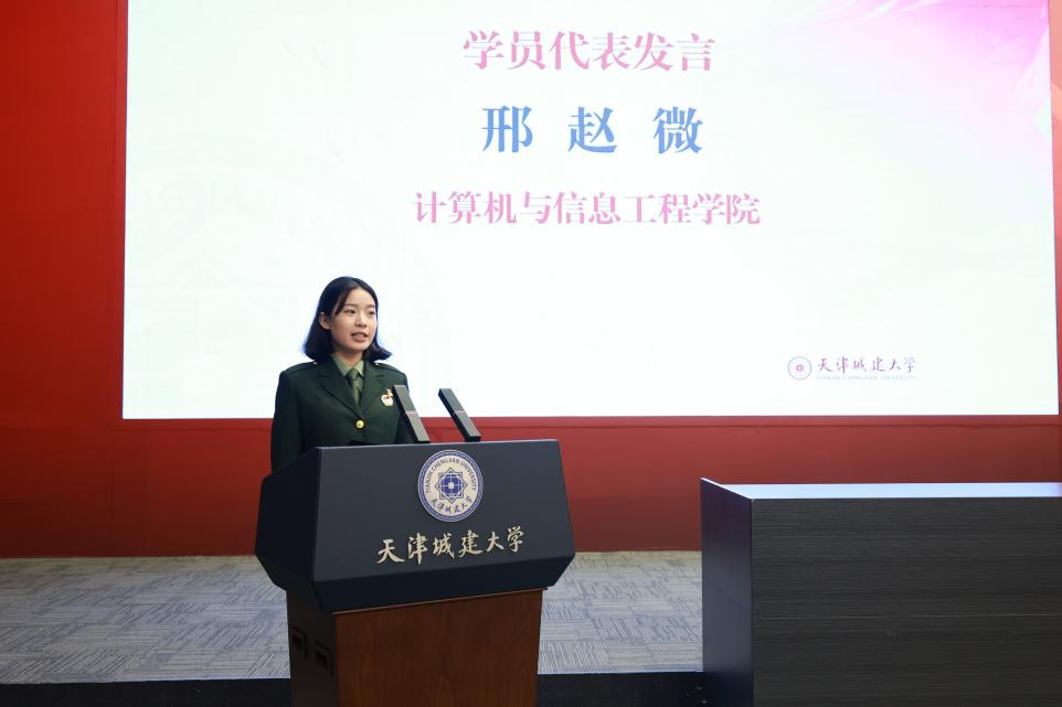计算机与信息工程学院邢赵微代表全体党校培训班学员发言,表示将以饱满的热情和实际行动完成好党课学习,在学习实践中提升思想觉悟,在知行合一中淬炼党性修养,以专业所学赋能服务发展,勇担青春使命,奉献无悔青春。
