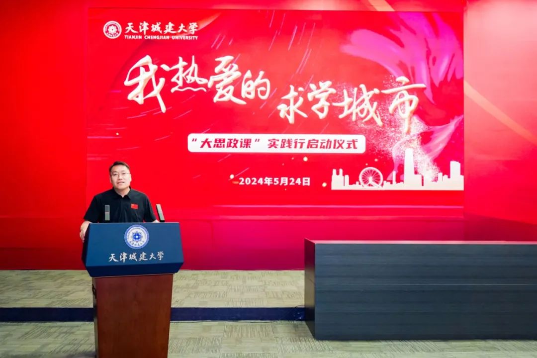 土木工程学院教师代表王建烁作为专业课教师代表发言,表示作为新时代智能建造新工科专业的教师,能成为“大思政课”建设者的一员深感光荣。要通过“大思政课”提精神、加担子、正学风,将课程知识点与时代背景结合起来,让同学们在求学的同时,与自己脚下的这片土地产生真实的联系,在这座城市度过一段多彩多姿、有血有肉,既有书卷气又有烟火气的求学时光,使自己的人生收获一笔珍贵的阅历。
