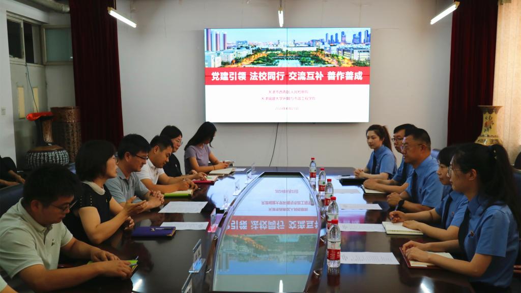 安全稳定是一切工作的基石。为更好适应当前复杂多变的国内外形势形式,引导学生进一步树立法治观念,守护校园安全,环境与市政工程学院与西青区人民检察院开展普法共建活动。院党委书记朱复义、副书记沈杰然携学生党支部书记及学生代表,西青区人民检察院党组成员、副检察长刘海东、第二检察部主任王倩、第二检察部副主任孙涛及检察院代表参加本次共建活动。