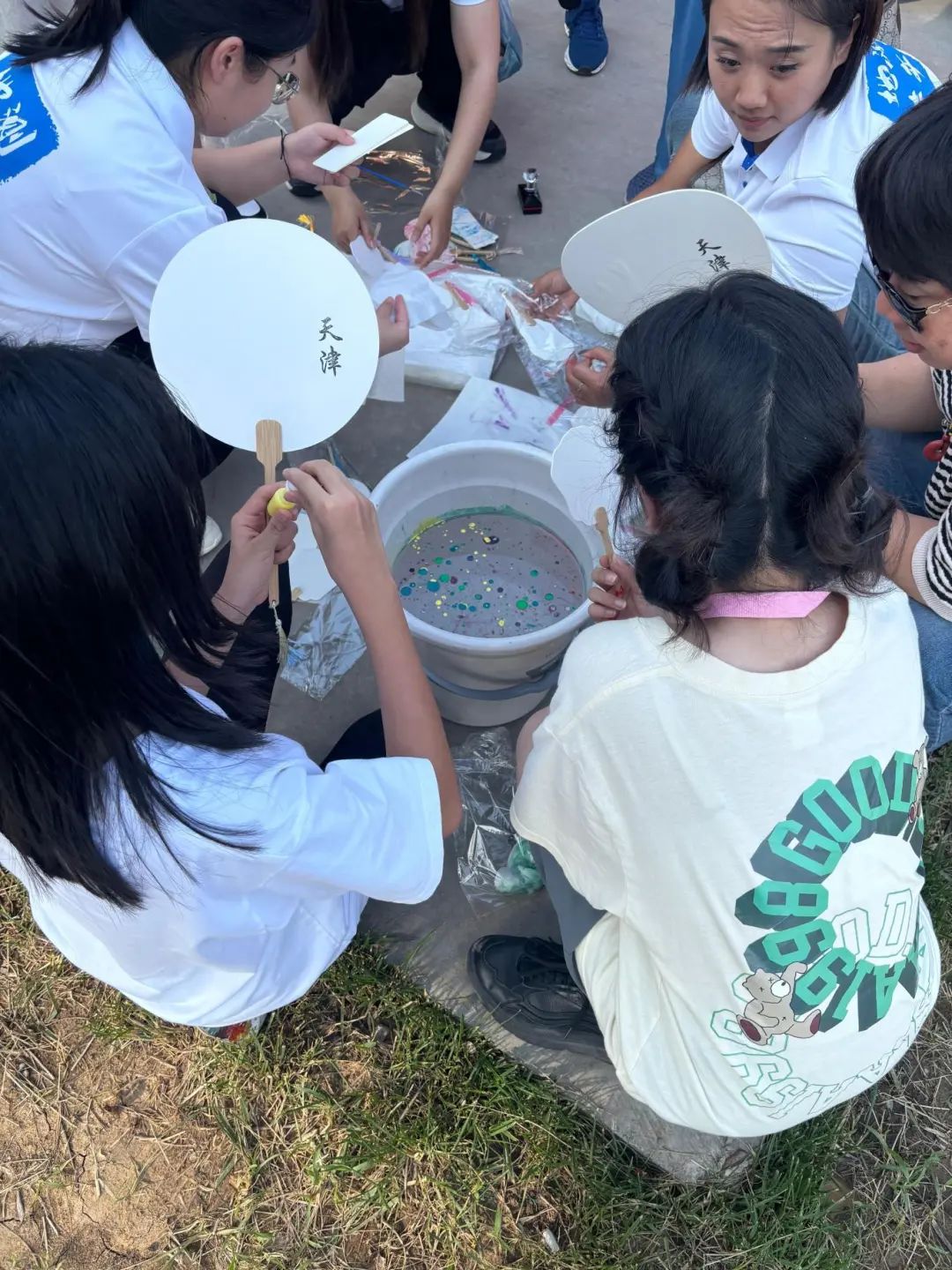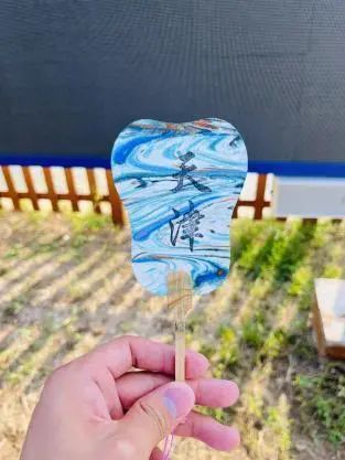 实践团成员带领当地村民体验漆扇非遗手工项目,对制作方法进行讲解与示范,通过与村民们的共同协作,充满绿色与活力的作品跃然出现,在带来一项非遗文创产品的同时,感悟夏天中的一抹清凉。