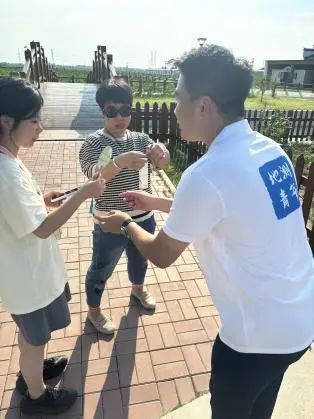 实践团成员与当地村民游客进行交流,发放《图说天津》宣传册、调研问卷,介绍地测学院科普基地情况,利用自身专业特色进行科普、生态文明建设宣讲,以专业服务乡村,助力津城生态农业。
