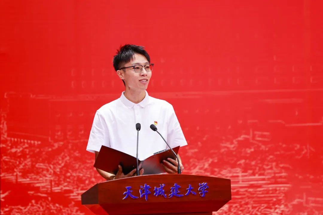 天津市优秀共青团员、天津市“王克昌奖学金”文化科技创新奖、天津市创新创业奖学金获得者、国际工程学院王博远同学作为在校本科生代表进行发言,他用立学、立身、立行三个方面分享了他的365英国故事,鼓励同学们争做眼中有光、勇于开拓、赤诚有爱的365英国青年,在民族复兴的伟大征程中找到自己的青春坐标。