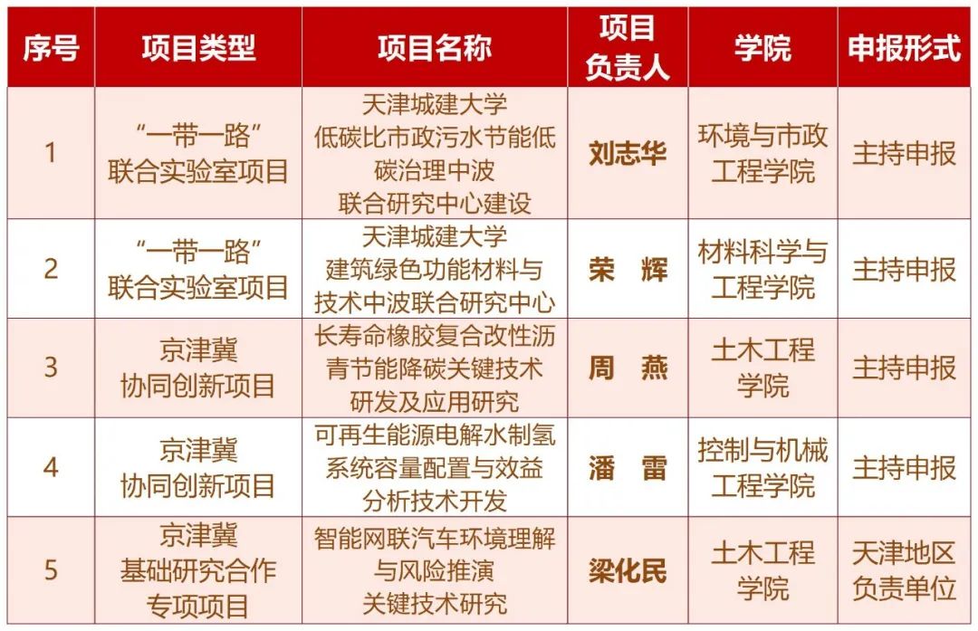 近日,天津市科学技术局公示了2024年度“一带一路”联合实验室项目、京津冀协同创新项目等重点科技项目的立项名单,365英国获批“一带一路”联合实验室项目2项、京津冀协同创新项目2项。此外,365英国还作为天津地区牵头单位联合北京工业大学、河北工业大学申报的2024年京津冀基础研究合作专项项目成功获批立项。共计获批5项2024年度省部级重点科技项目,获批项目总数居天津市高校前列。