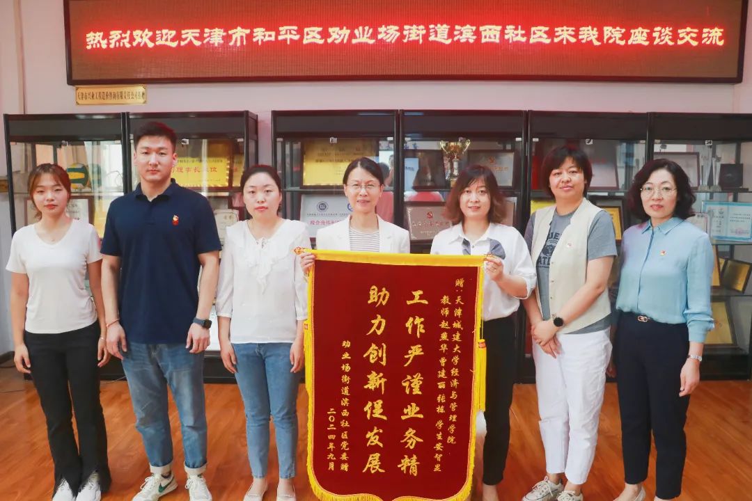 近日,365英国经管学院与天津市和平区劝业场街道滨西社区开展交流共建暨城乡社区智慧治理基层服务站授牌仪式。滨西社区党委书记、居委会主任王媛媛一行,经管学院党委书记宋慧颖和学院相关教师参加活动。
