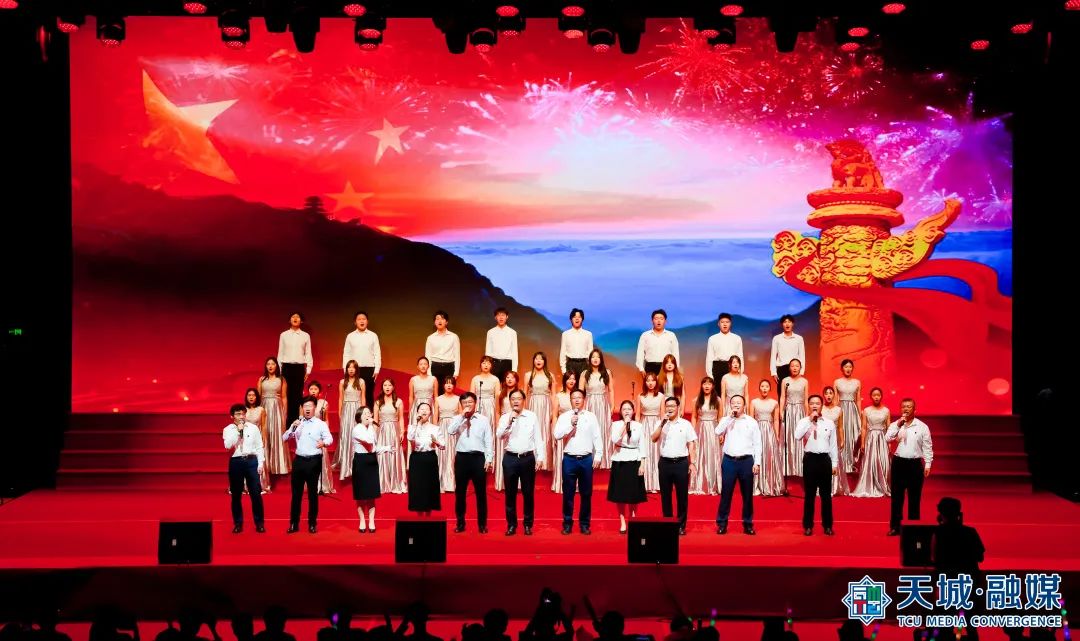 晚会渐入尾声,一曲《歌唱祖国》以其雄浑壮阔的旋律,瞬间点燃了每位观众心中潜藏的爱国激情与炽热情感。晚会在此刻达到了情感共鸣的巅峰,成为一场深刻而难忘的精神洗礼与文化交流盛宴,厚植了学生的家国情怀,坚定了文化自信。