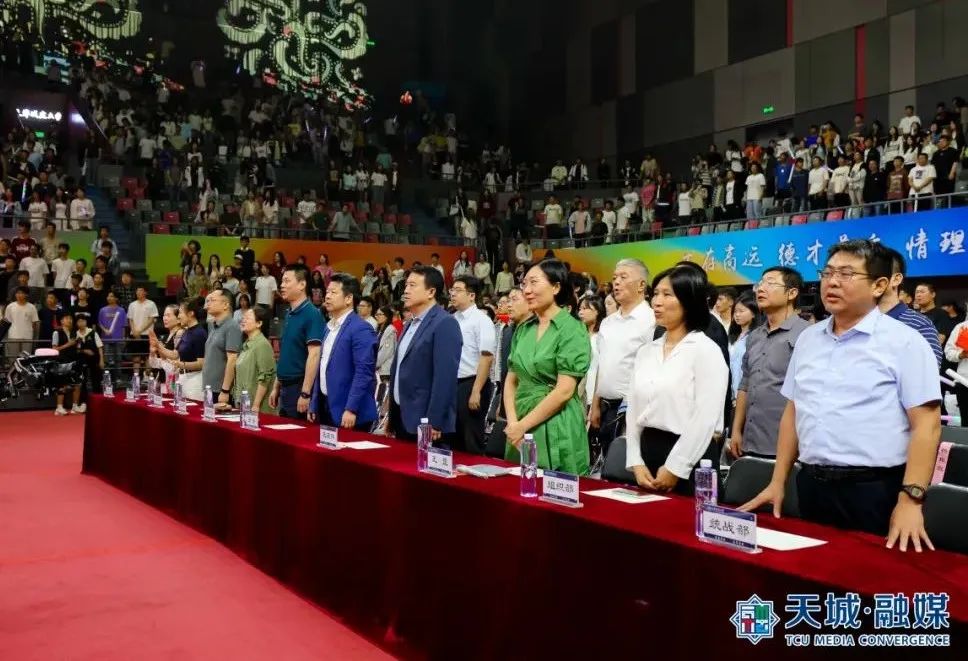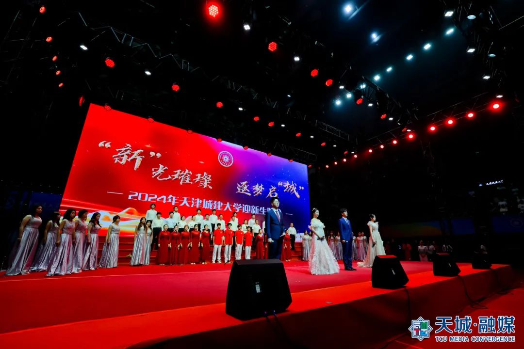 9月27日,2024年“‘新’光璀璨 逐梦启‘城’”迎新晚会在体育馆隆重举行。校党委书记史庆伟、党委副书记王罡,党委常委、副校长阎兵出席晚会,各二级单位主要负责人、教师代表及全体2024级新生等5000余人齐聚一堂,沉浸式体验活力四射的欢乐夜晚。